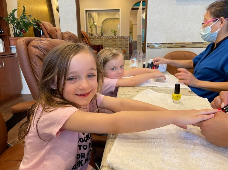 Daddy Daughter Day at the Nail Salon getting ready for a trip to Galveston! Look at our shirts as I multitask & multipurpose these photos!![]()