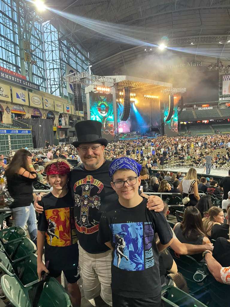 Welcome To the Jungle Sons! On National Sons day! 1st concert I didn’t have to “force” them to go to where they actually knew the music from the radio, TV, movies & friends already! Use Your Illusion 1 born 2 minutes before Use Your a Illusion 2!![]()